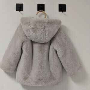 Zara cream colored faux fur coat, size 2-3 years. hood & pockets. Lined - super cozy! minor wear. great used condition.