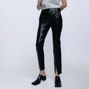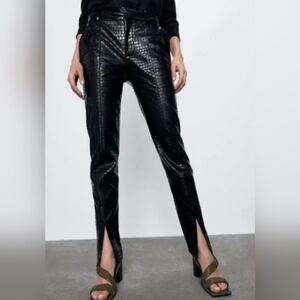 Zara Faux Leather Black Reptile Print Pants Size XS