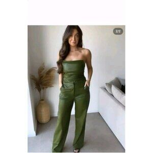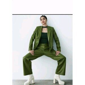 Zara Faux Leather Blazer Jacket Olive Green Size M 4432 740