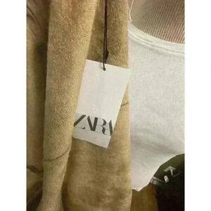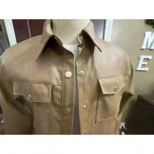 Zara Faux Leather Button Down Two Pocket Beige Taupe Shacket Jacket New W/ Tags. Condition is New with tags. Shipped with USPS Priority Mail.