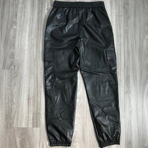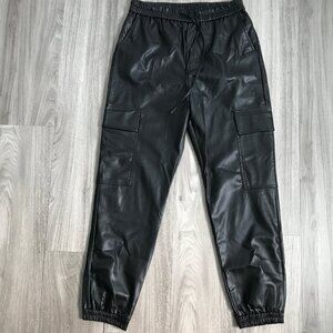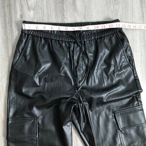 Zara Faux Leather Jogger Pant Black Pockets Drawstring Elastic Waist Womens S