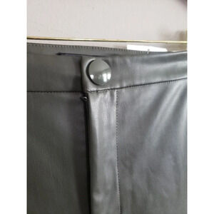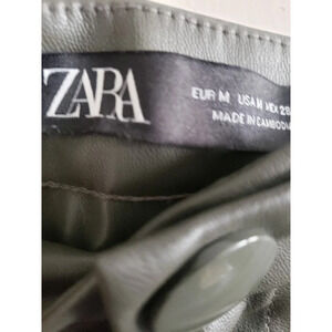 Zara Faux Leather Leggings Women's Medium Green High Rise Ankle Zip Raw Hem