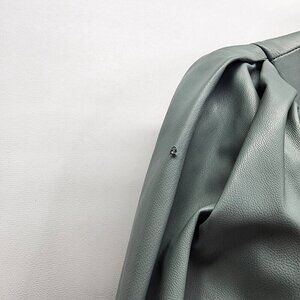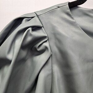 Zara Faux Leather Ruched Puff Sleeve Dress Sold Out Seafoam Green Large