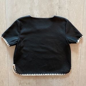 Super Chic Zara Knit Faux Leather Short Sleeve Top