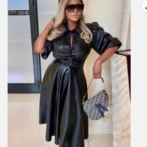 Zara Faux Leather Skirt With Belt Black Blogger Fav Size Large