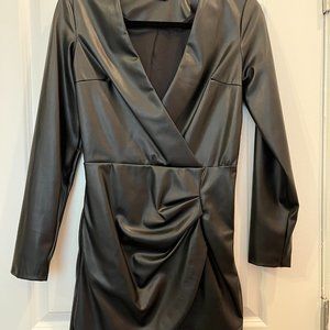 Zara Faux Leather V-Neck Long Sleeve Wrap Front Mini Dress