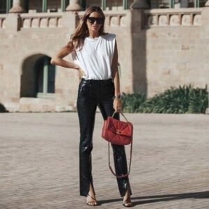 Zara Black embossed faux leather pants size L