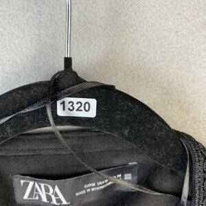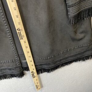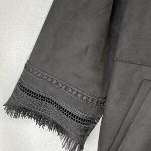 Zara Faux Suede Jacket Women's Medium Black Lace Trim Boho Open Front Oversized