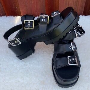 Greek-inspired lace-up sandals in soft faux suede with gold button details and a square toe. Lightly worn, some fraying on the cords (see photos). Made in Spain. Narrow fit — best for someone who usually wears size 40.