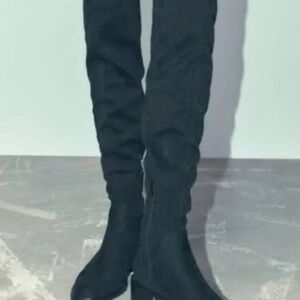 Zara Faux Suede Micro Fabric Mid Height Heel Boots Ref 2052/110