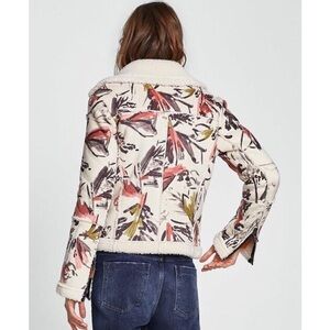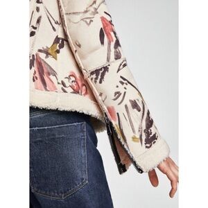 Zara Faux Suede Shearling Painted Moto Zip Jacket