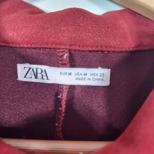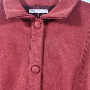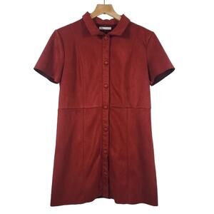 Zara Faux Suede Short Sleeve Collared Snap Button Mini Dress Size Med