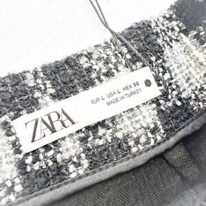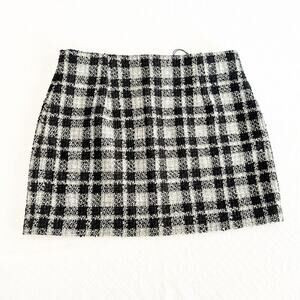 Zara Faux Tweed Plaid Patterned Cotton Blend Mini Skirt Size L (NWOT)