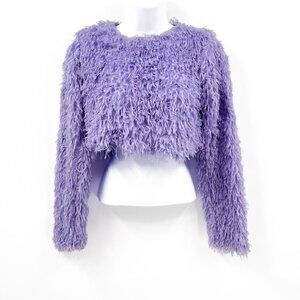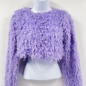 Zara Feather Effects Purple Shaggy Long Sleeve Cropped Sweater Top Small