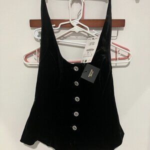 Zara Festive Days Women's Velvet Button Down Top, Black, Large, NWT