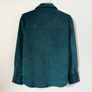 Zara Fine-Waled Emerald Green Corduroy Oversized Long Sleeve Button Blouse SZ M