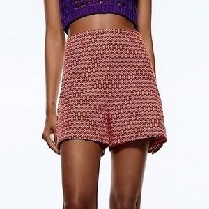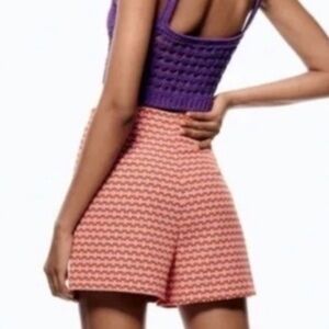 Zara High Waisted Orange and Purple Geometric Print Shorts Size S Small