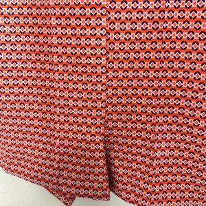 Adorable summer shorts. Orange with purple and white geometric pattern. Measures: 14” across top of waist, laying flat; 3” inseam