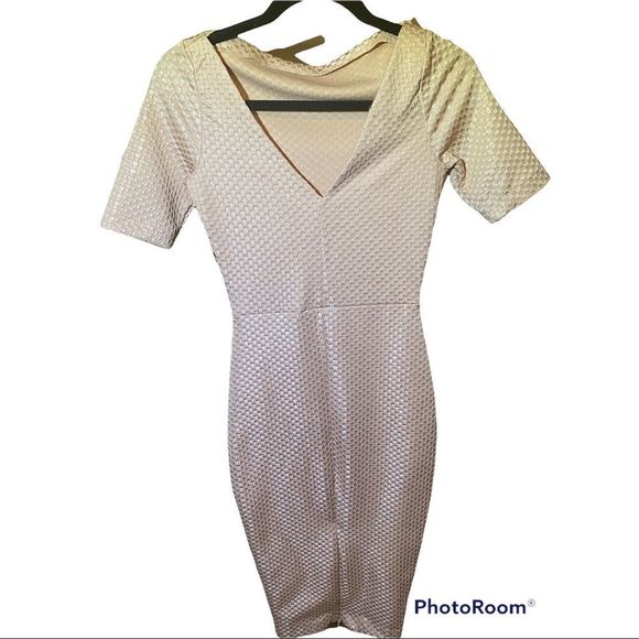 Zara Fitted Pink Dress Checkered Pattern