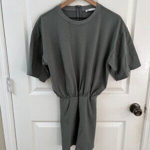 Beautiful sage green romper with combination stretchy polyamide shorts. Zip up closure.
