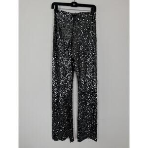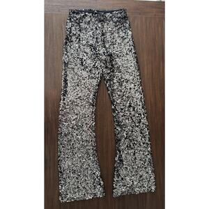 Zara Flare Sequin Pants Moss Green Silver Sparkly XS