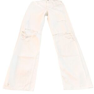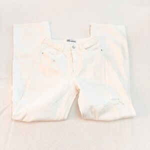 Zara Flare White Denim Jeans Button Fly Ripped Throuhout Size 06