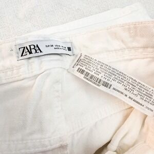 Zara Flare White Denim Jeans Button Fly Ripped Throuhout Size 06