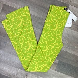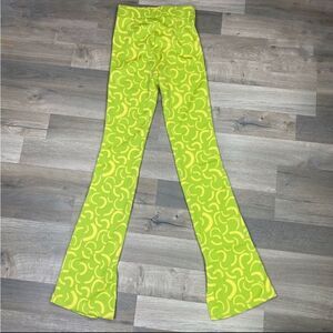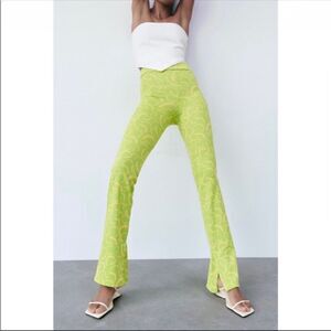 Zara Flared Jacquard Print Knit Pull On High Rise Pants Lime Green Yellow XS