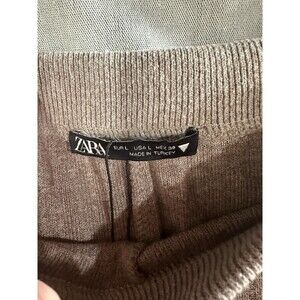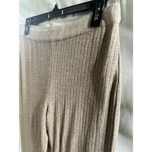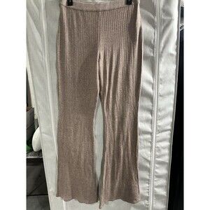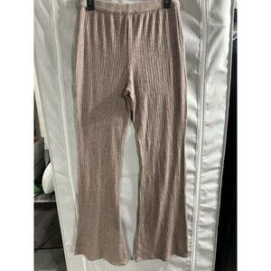 Zara Flared Ribbed Leggings High Rise Medium Elastic Waist Stretch Beige Tan L