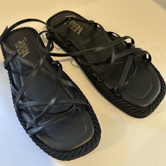 Zara Flatform Leather Rope Strappy Platform Chunky Sandal Size 40 EUC Size 9