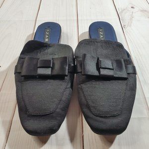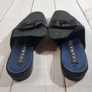 Zara Flats 36 US 6 Womens Shoes Black Fabric Mules Slip On Shoes Bows Square Toe