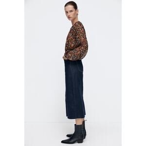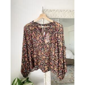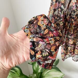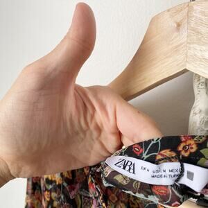 Zara Floral Balloon Sleeve Top in black with multicolor floral print.