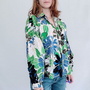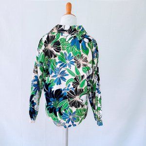 Zara Floral Blue/Green/Black/White Multicolor Cotton Button Down Shirt - Small