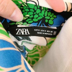 Zara Floral Blue/Green/Black/White Multicolor Cotton Button Down Shirt