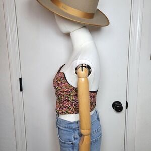 Zara Floral Brocade Corset Crop Top Hook & Eye Back Size XS