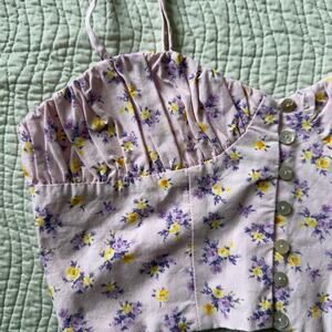 Zara Floral Bustier Corset Top Pink Spaghetti Strap Cropped Size XS