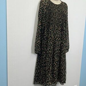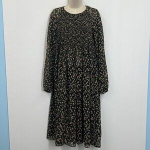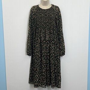 Zara - Floral Colorful Print Long Sleeve See Thru Midi Dress Size Medium