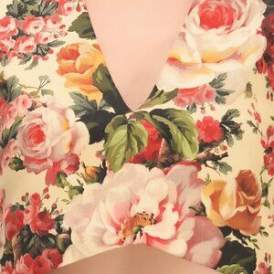 Zara Floral Crop Tank Top S V-Neck Vintage Rose Print Zip Back Summer Flower