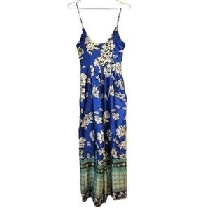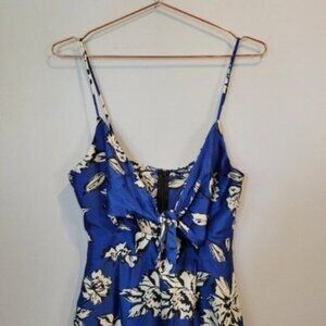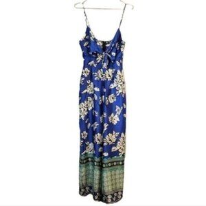 Zara | Floral Cut out Wide Flare Leg Jumpsuit Blue Green