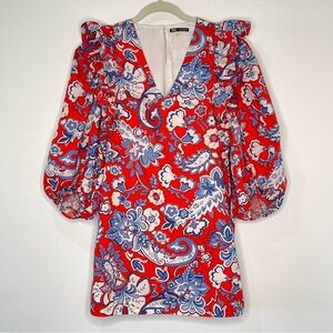 Zara Floral Dress with Balloon Puff Sleeves Red, White, And Blue 4th Of July M