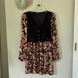 Zara Floral Dress with Blqck Velvet Vest Combo - Size M