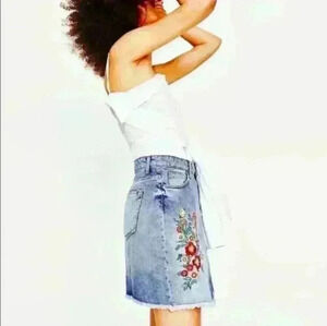 Zara Floral Embroidered Asymmetrical Denim Jean Skirt