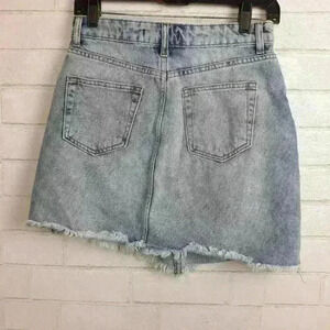 Zara Floral Embroidered Asymmetrical Frayed Hem Denim Jean Skirt. Preloved in excellent condition. Please note there is a small pull in the thread on the front of skirt. See pic 8. Measurements are approximate: