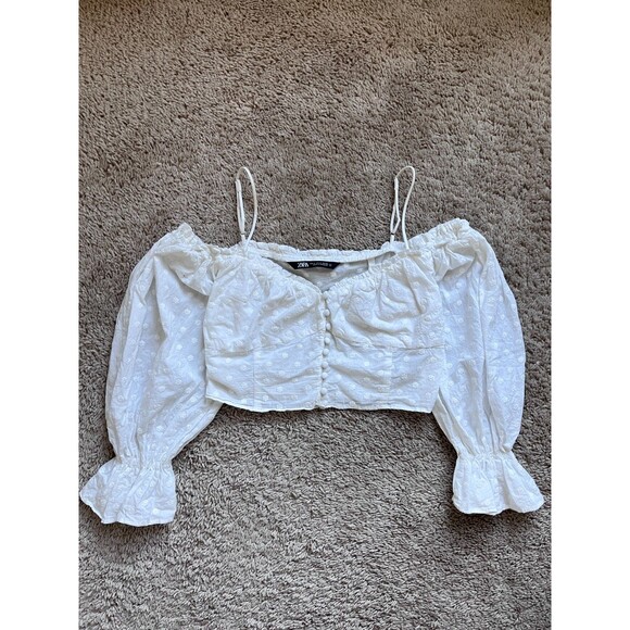 Zara Floral Embroidered Off-Shoulder Crop Top in Oyster White Size SMALL