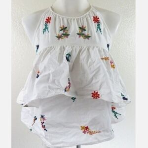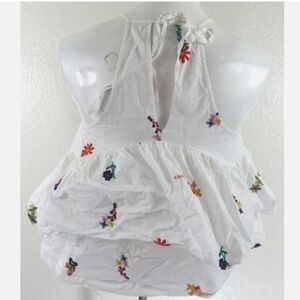 Item: Women's White Floral Embroidered Halter Tie Tiered Tank Top