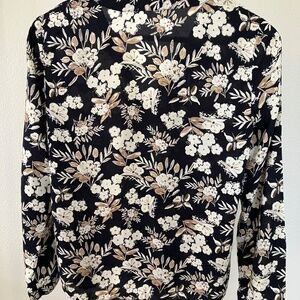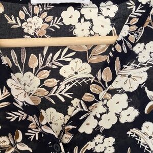 The garment is slightly sheer and has a nice smooth texture, rayon 100%; hard to tell from the pics but it is dark navy (close to black)
