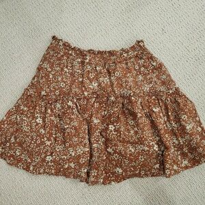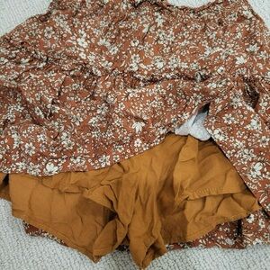 Rust/orange skirt with flower print. Comes with built-in shorts.