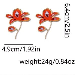 Make a bold statement with these exquisite floral earrings. Featuring vibrant orange and gold tones, these earrings are perfect for adding a touch of elegance to any outfit.