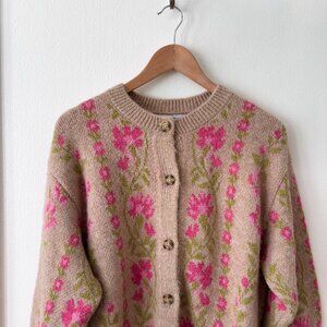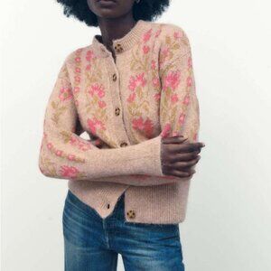 EUC; Zara Floral Jacquard Knit Cardigan Sweater