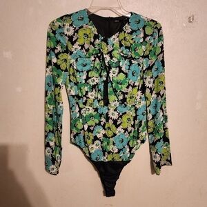Zara Floral Long Sleeve Snap Closure Bodysuit Open Front Size S NWOT